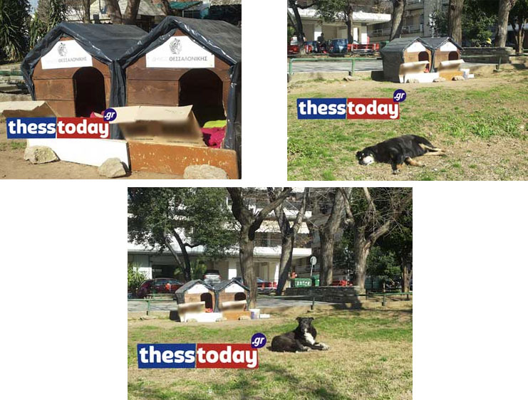 Περπατώντας στην οδό Αρτάκης, στην Κάτω Τούμπα Θεσσαλονίκης, δεν υπάρχει περίπτωση να μην πέσει το μάτι του διερχόμενου πεζού σε δύο σπιτάκια για αδέσποτα, που έχει στήσει στο παρκάκι πίσω από τον Άγιο Θεράποντα ο Δήμος Θεσσαλονίκης.