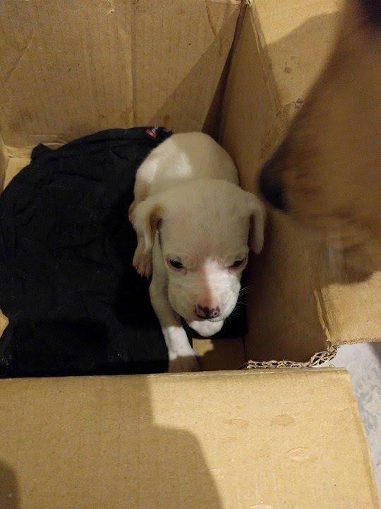 Το κουταβάκι της φωτογραφίας βρέθηκε πεταμένο σε χαρτόκουτο στην περιοχή του μετρό Χαλανδρίου.