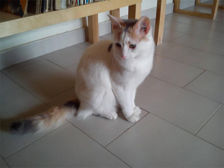 Τη λένε Λευκή. Έχει μπεζ ουρά και αυτιά, μια σταχτί τούφα στο κεφάλι και δύο βούλες στην πλάτη: μία μεγάλη καφέ και μία μικρή μαύρη. Η ουρά της είναι πολύ φουντωτή.