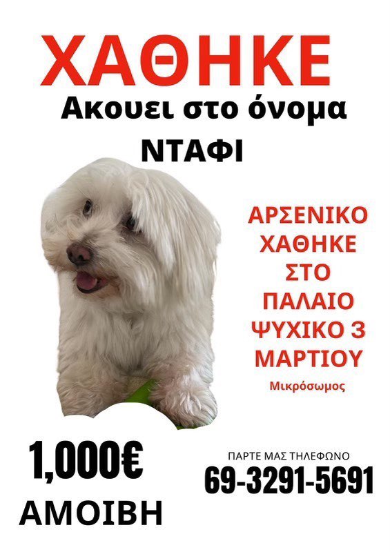 Χάθηκε ο Ντάφι στο Ψυχικό – Δίνεται αμοιβή 1.000 ευρώ
