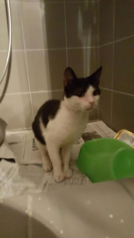 Χαδιάρης και τετραπέρατος ο γατούλης των φωτογραφιών αναζητά ένα μόνιμο σπίτι και μια ζεστή αγκαλιά. Είναι περίπου 3 μηνών, αρσενικός, με βιβλιάριο (κομπλέ από αποπαρασίτωση και εμβόλιο). Έχει μαύρο τρίχωμα στο πάνω μέρος και είναι λευκός από κάτω.