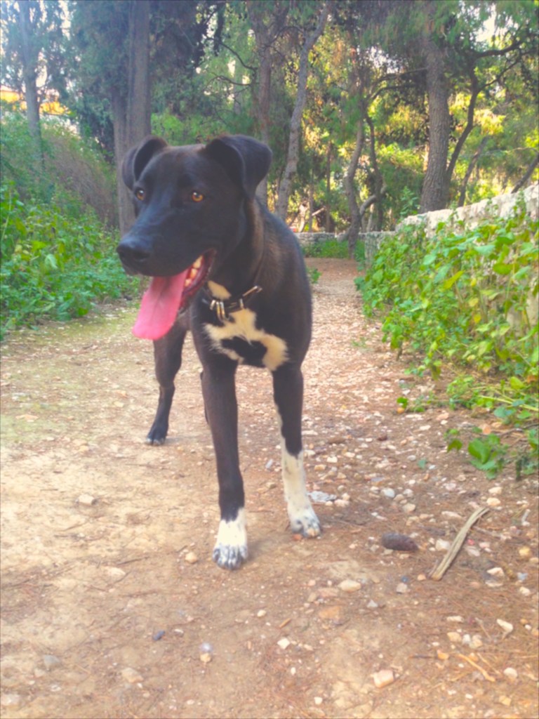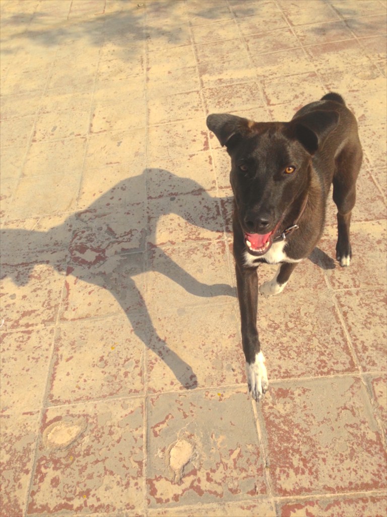 Αυτό σημαίνει ότι ο «Ekems» χαρίζεται. Έχει μαύρο τρίχωμα, δύο λευκά παπουτσάκια και λίγο άσπρο στο στήθος του. Είναι ημίαιμος και η ουρά του ήταν κομμένη όταν βρέθηκε πρώτη φορά στο στρατόπεδο. Έχει κάνει όλα τα εμβόλιά του, έχει τσιπάκι και βιβλιάριο. Δεν είναι στειρωμένος.