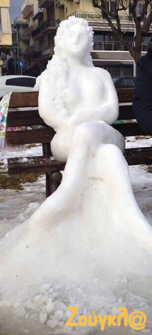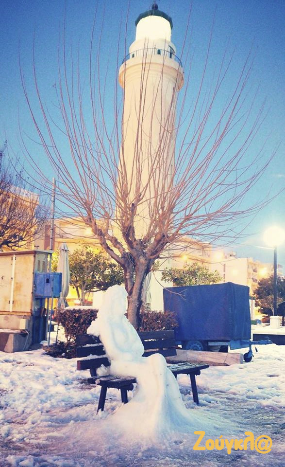 Το χιόνι μπορεί να λιώνει σιγά-σιγά στην Αλεξανδρούπολη, ωστόσο ένα ολόλευκο γλυπτό παραμένει… αγέρωχο, «αγναντεύοντας» το μαγικό τοπίο.