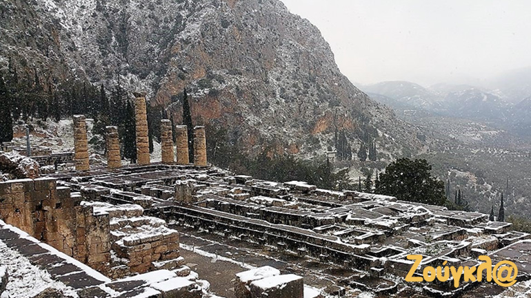 Μοναδικές εικόνες καταγράφηκαν από τους Δελφούς τις προηγούμενες ημέρες, εν μέσω χιονόπτωσης. Η φωτογραφία είναι από...