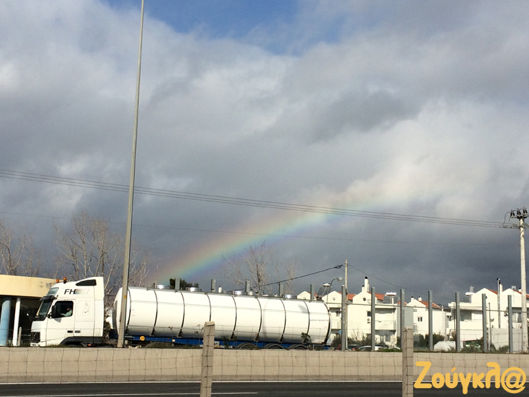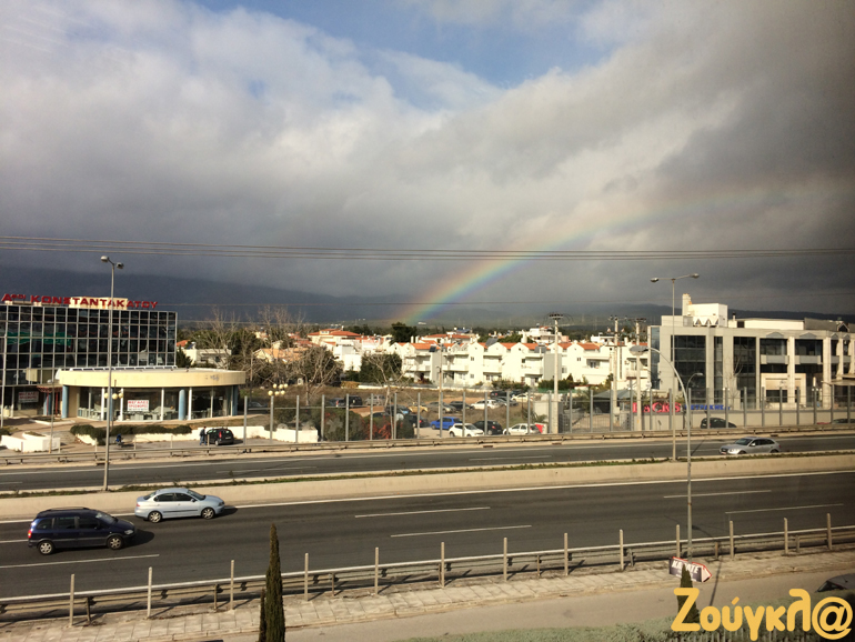 Όμορφες εικόνες αντίκρισαν το μεσημέρι της Παρασκευής οι κάτοικοι στα Βόρεια Προάστια. Ένα ουράνιο τόξο είχε εμφανιστεί στον ουρανό.