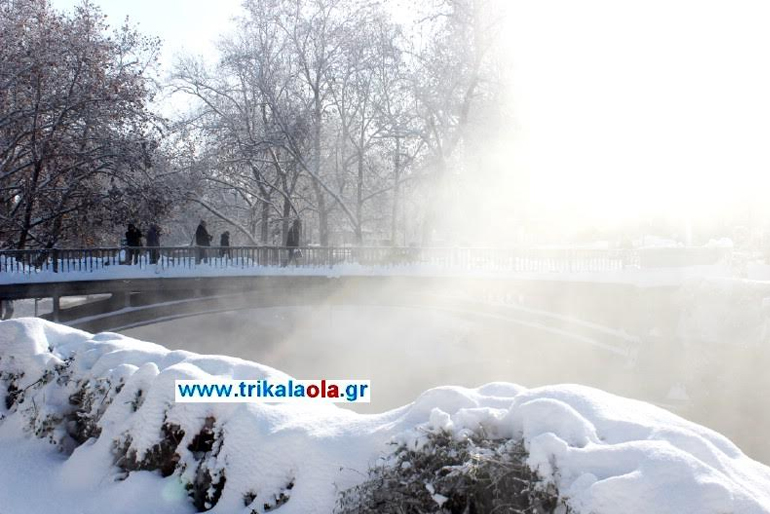 Η σφοδρή χιονόπτωση έβαλε δύσκολα στους κατοίκους των Τρικάλων, δημιουργώντας όμως πανέμορφες εικόνες στα πάρκα και τα αξιοθέατα της πόλης.