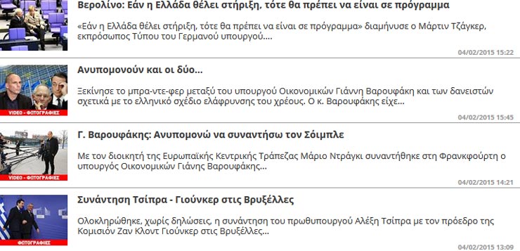 Σύμφωνα με ανώτατο κυβερνητικό αξιωματούχο του Βερολίνου που μίλησε στο Mega: «Δεν θα υπάρξει περαιτέρω βοήθεια στην Ελλάδα αν δεν τηρήσει δεσμεύσεις της». Μάλιστα, όπως είπε με έμφαση ο ίδιος αξιωματούχος, η Γερμανία «δεν δέχεται εκβιασμούς και δεν φοβάται ένα ενδεχόμενο Grexit, αν και το Βερολίνο δεν το επιθυμεί. Το μέλλον είναι σκοτεινό, εσείς αποφασίζετε». Προειδοποιεί επίσης ότι είναι «αυτονόητο, οποιοδήποτε νέο πρόγραμμα θα συνδέεται με επιτήρηση», ότι «τα περιθώρια πλέον είναι ασφυκτικά, ο χρόνος τελειώνει και το τέλος Φεβρουαρίου πλησιάζει» και πως η γερμανική πλευρά δεν συζητά «κούρεμα». Τονίζει ότι υπάρχουν «ισχυρά πολιτικά και νομικά κωλύματα για να αλλάξουν οι συμφωνίες, όπως ζητεί η νέα κυβέρνηση και πως υπάρχουν επίσης ισχυρές αντιστάσεις στο γερμανικό κοινοβούλιο». «Οι βουλευτές έχουν άγριες διαθέσεις έναντι της Ελλάδος και δεν θα κάνουν πίσω ακόμη και αν ο Σόιμπλε έδινε το πράσινο φως για αλλαγές».