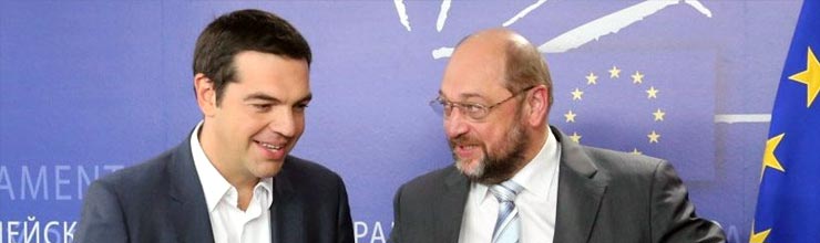 «Σε τέτοια περίπτωση, η Ελλάδα θα σταματήσει να λαμβάνει χρήματα και το κράτος δεν θα έχει τη δυνατότητα να αυτοχρηματοδοτηθεί»Σαν να μην έφταναν αυτά, ο πρόεδρος του Ευρωπαϊού Κοινοβουλίου, Μάρτιν Σούλτς, λίγες ώρες μετά τα χαμόγελα και τις φιλοφρονήσεις με τον κ. Τσίπρα στις Βρυξέλλες, προειδοποίησε μέσω της Handelsblatt, ότι «αν η Ελλάδα αλλάξει μονομερώς τις συμφωνίες, τότε η άλλη πλευρά δεν θα είναι πλέον δεσμευμένη να τις τηρήσει». Και απείλησε με χρεοκοπία: «Σε τέτοια περίπτωση, η Ελλάδα θα σταματήσει να λαμβάνει χρήματα και το κράτος δεν θα έχει τη δυνατότητα να αυτοχρηματοδοτηθεί».