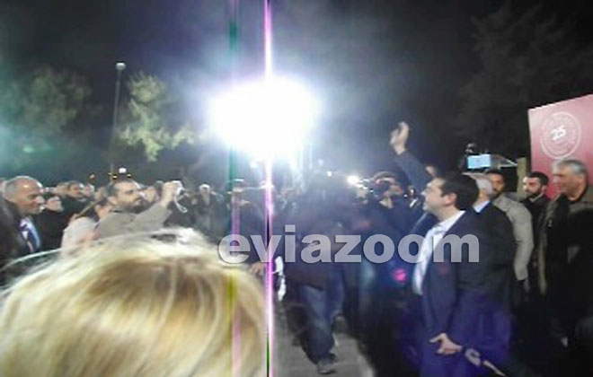 Ο πρόεδρος του ΣΥΡΙΖΑ Αλέξης Τσίπρας επισκέφθηκε το βράδυ της Μεγάλης Πέμπτης την Χαλκίδα και παρ’ όλο την βροχή που έπεφτε, γνώρισε την αποθέωση από εκατοντάδες πολίτες που έδωσαν το παρών στη παραλία της πόλης για να παρακολουθήσουν την ομιλία του.