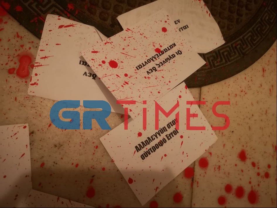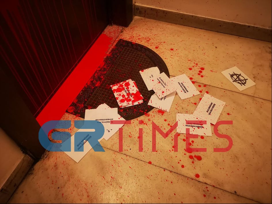 Συγκεκριμένα, οι δράστες έριξαν κόκκινη μπογιά στην είσοδο του πολιτικού γραφείου του βουλευτή αλλά και τρικάκια.