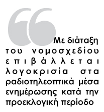 Με ένα άρθρο, συγκεκριμένα το 18 της παραγράφου 2 του νομοσχεδίου, επιβάλλεται λογοκρισία στα ραδιοτηλεοπτικά μέσα ενημέρωσης κατά την προεκλογική περίοδο.