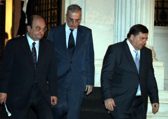 Η κρίσιμη σύσκεψη του πρωθυπουργού, Λουκά Παπαδήμου με τους πολιτικούς αρχηγούς στο Μέγαρο Μαξίμου που ξεκίνησε στις 15:30 το μεσημέρι ολοκληρώθηκε στις 20:30 το βράδυ. Μετά τις σκληρές πιέσεις των τροϊκανών για την εφαρμογή πολύ σκληρών μέτρων, που περιλαμβάνουν νέες απολύσεις και μειώσεις μισθών, οι αρχηγοί καλούνται να πάρουν πολύ συγκεκριμένες και επώδυνες αποφάσεις, όπως χαρακτηριστικά αποκάλυψε κυβερνητική πηγή.