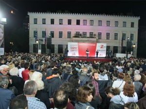 «Αυτή την Κυριακή τελειώνουμε με τους εκβιαστές, τελειώνουμε με τους τρομοκράτες του ελληνικού λαού, τελειώνουμε με τη συμμόρφωση προς τις υποδείξεις, τελειώνουμε με τα μνημόνια και τις πολιτικές της καταστροφής και παίρνουμε τις τύχες μας στα δικά μας χέρια» είπε ο κ. Τσίπρας.