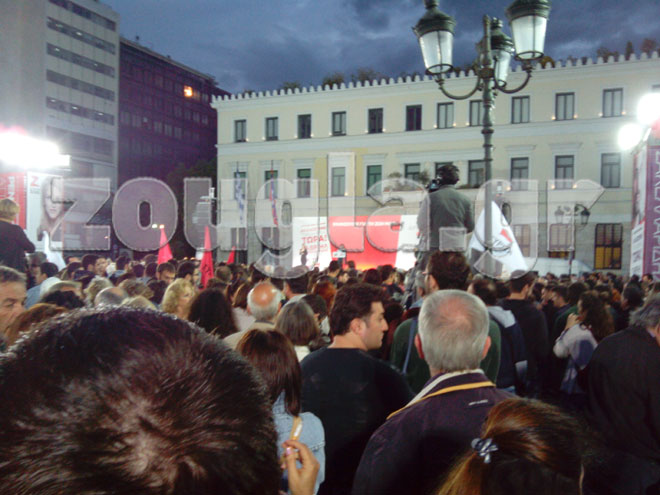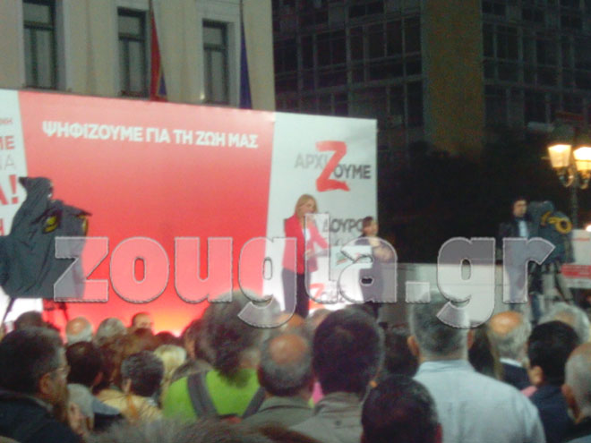 Από την πλευρά της, η υποψήφια περιφερειάρχης Αττικής, Ρένα Δούρου, είπε: «Έφθασε η ώρα, η ώρα της κάλπης, της επιλογής. Αυτή η ώρα που τόσο πολύ φοβούνται οι κ. Σαμαράς και Βενιζέλος, η ώρα των εκλογών. Που αν ήταν στο χέρι τους, θα τις έκαναν βράδυ, για να μην τις πάρει χαμπάρι κανείς, για να περάσουν απαρατήρητες, για να μην στείλετε κανένα μήνυμα, για να μην αναγκαστούν να πάρουν το μήνυμα αυτής της κάλπης. Ένα μήνυμα απλό, μία λέξη: Φύγετε».