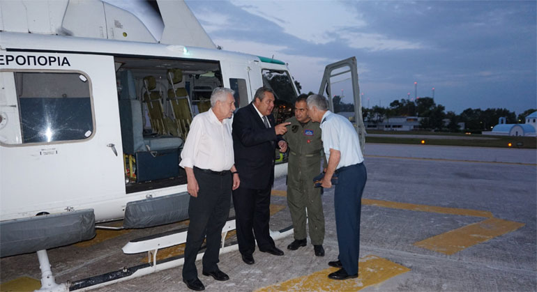 Αυτοψία πάνω από τις πληγείσες περιοχές της Αττικής πετώντας με ελικόπτερο πραγματοποίησε νωρίς το πρωί ο υπουργός Εθνικής Άμυνας Πάνος Καμμένος, μαζί με τον αναπληρωτή υπουργό Φώτη Κουβέλη και τον αρχηγό του Γενικού Επιτελείου Αεροπορίας, αντιπτέραρχο Χρήστο Χριστοδούλου.