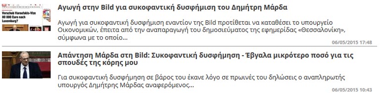 Την Παρασκευή 15/05/2015 ο Αναπληρωτής Υπουργός Οικονομικών, Δημήτρης Μάρδας, προσέφυγε στη Δικαιοσύνη κατά της Γερμανικής εφημερίδας «Bild», για την «αποκατάσταση της αλήθειας, της τιμής και υπόληψής του, από την παράνομη και υπαίτια προσβολή της προσωπικότητας που υπέστη» με το ψευδές δημοσίευμα της εφημερίδας, που τον ονομάτιζε ως τον πολιτικό που δήθεν μετέφερε 80.000 ευρώ στο Λουξεμβούργο.