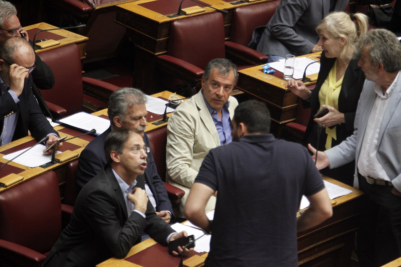 Έντονη αντιπαράθεση είχαν στη Βουλή ο πρωθυπουργός Αλέξης Τσίπρας και ο επικεφαλής του Ποταμιού Σταύρος Θεοδωράκης. Η συνεδρίαση διακόπηκε για λίγα λεπτά μετά τις αντεγκλήσεις βουλευτών που σημειώθηκαν όταν ο κ. Θεοδωράκης είπε ότι ο πρωθυπουργός «έχει πάρει δίπλα του στελέχη που έχουν κλέψει πολιτικό χρήμα».
