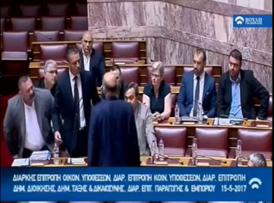 Ήταν τότε που, κατά πληροφορίες, ο Ηλ. Κασιδιάρης απώθησε βίαια τον Νίκο Δένδια, ενώ άλλοι βουλευτές της Χρυσής Αυγής φέρονται να του έριξαν μπουκάλια με νερό.