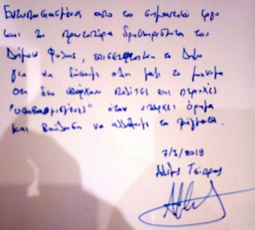 Δείτε την ιδιόχειρη σημείωση του πρωθυπουργού:
