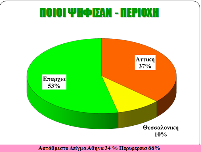 Από τους συμμετέχοντες στην ψηφοφορία το 53% προέρχονται από την επαρχία, το 37% από την Αττική και το 10% από τη Θεσσαλονίκη. Αξιοσημείωτο είναι το γεγονός ότι το 70% των ερωτηθέντων έχουν ανώτατη και ανώτερη μόρφωση, 29% μέση και μόλις το 1% κατώτατη.