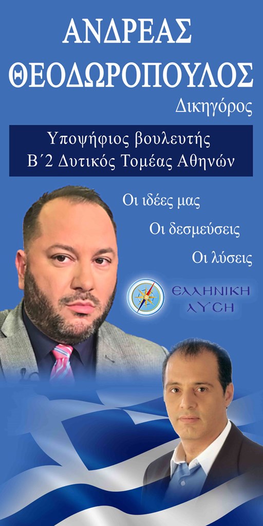 Ανδρέας Θεοδωρόπουλος: Υποψήφιος Βουλευτής του Β 2 Δυτικού τομέα Αθηνών στις περιοχές: Περιστέρι Αττικής, Ίλιον. Άγιοι Ανάργυροι, Πετρούπολη, Καματερό, Αιγάλεω, Αγία Βαρβάρα.
