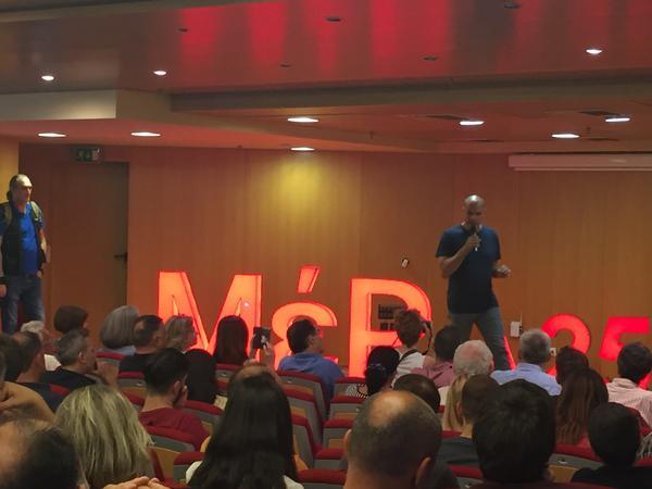 Στην εκδήλωση μίλησε ο Γραμματέας του ΜέΡΑ25, Γιάνης Βαρουφάκης, αλλά και η υποψήφια της Β3 Αθήνας Σοφία Σακοράφα.