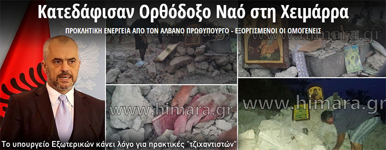 «Η ενέργεια των αλβανικών αρχών να κατεδαφίσουν το ναό του Αγίου Αθανασίου στους Δρυμάδες της Χειμάρρας, παρά τις αντιρρήσεις που είχε εκφράσει η Ορθόδοξη Εκκλησία της γειτονικής χώρας, συνιστά ευθεία και θρασύτατη πρόκληση σε βάρος της ελληνικής μειονότητας καθώς και επίδειξη αδιαλλαξίας» επεσήμανε η κ. Χρυσοβελώνη.