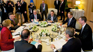 Υπενθυμίζεται ότι στο ίδιο τραπέζι κάθισαν ο Έλληνας πρωθυπουργός Αλέξης Τσίπρας, η Γερμανίδα καγκελάριος Άνγκελα Μέρκελ, ο Γάλλος πρόεδρος Φρανσουά Ολάντ, ο διοικητής της Ευρωπαϊκής Κεντρικής Τράπεζας Μάριο Ντράγκι, ο πρόεδρος του Ευρωπαϊκού Συμβουλίου Ντόναλντ Τουσκ, ο πρόεδρος της Ευρωπαϊκής Επιτροπής Ζαν Κλοντ Γιούνκερ και ο επικεφαλής του Eurogroup Γερούν Ντάισελμπλουμ. Την τελευταία στιγμή προστέθηκε στη λίστα και ο γενικός γραμματέας του Συμβουλίου της Ε.Ε. Ούβε Κορσέπιους.