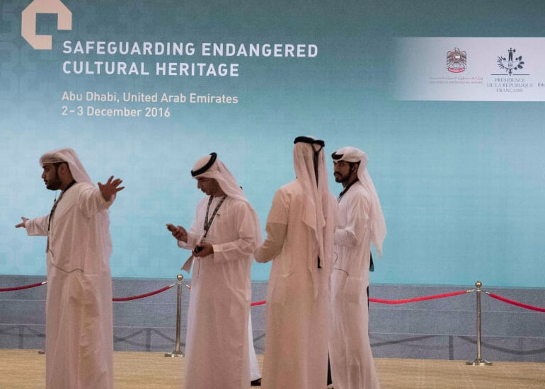 Ο πρωθυπουργός αναχώρησε από τη χώρα της επανάστασης (Κούβα) και μετέβη στο Άμπου Ντάμπι, πρωτεύουσα των Ηνωμένων Αραβικών Εμιράτων, γνωστή και ως πόλη της υπερβολής, προκειμένου να παραστεί στη «Διεθνή Διάσκεψη για την Προστασία της Πολιτιστικής Κληρονομιάς σε Περιοχές Συγκρούσεων».