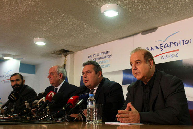 Λίγη ώρα μετά την ολοκλήρωση της συνέντευξης Τύπου, δόθηκε έμμεση απάντηση από την κυβέρνηση με τη διαρροή φωτογραφίας του Γ. Αποστολόπουλου δίπλα στον πρόεδρο των ΑΝΕΛ από την περσινή συνάντησή του με τον Αλέξη Τσίπρα και τους συνεργάτες τους.