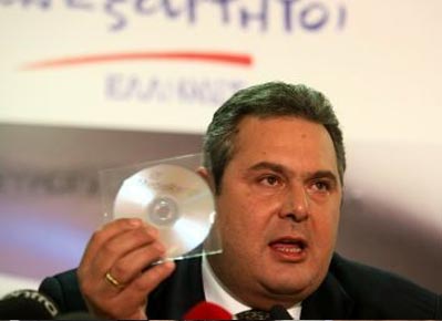 Αποκαλύψεις-φωτιά έκανε ο Πάνος Καμμένος, κατά τη διάρκεια συνέντευξης Τύπου στα γραφεία των ΑΝ.ΕΛ. επί της Λεωφ. Συγγρού, σε σχέση με την απόπειρα χρηματισμού του βουλευτή του κόμματός του Παύλου Χαϊκάλη. Oι Ανεξάρτητοι επιτίθενται έχοντας κασέτες στα χέρια τους, με τη Νέα Δημοκρατία να απαντά δίνοντας στη δημοσιότητα φωτογραφία από παλαιότερη επίσημη συνάντηση των κ.κ. Καμμένου-Τσίπρα και του φερόμενου πρωταγωνιστή της υπόθεσης, Γ. Αποστολόπουλου.