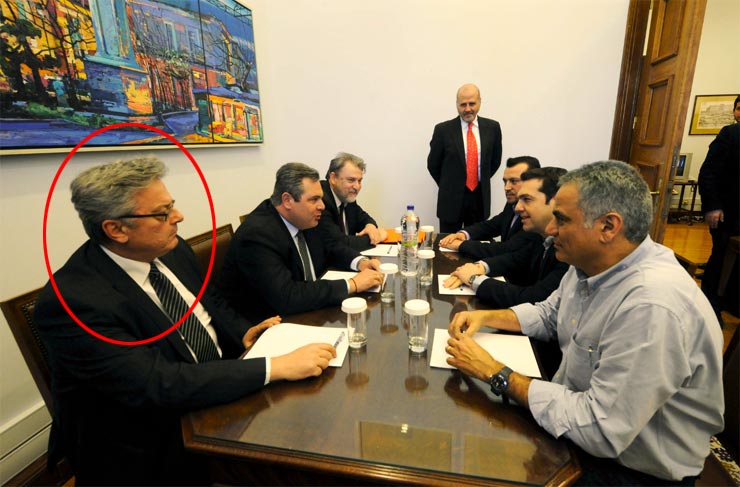 Όπως ανέφερε ο πρόεδρος του κόμματος Πάνος Καμμένος, συνάντησε τον κ. Αποστολόπουλο στο γραφείο του κ. Σαμαρά σαν στέλεχος της γερμανικής Deutsche Bank.