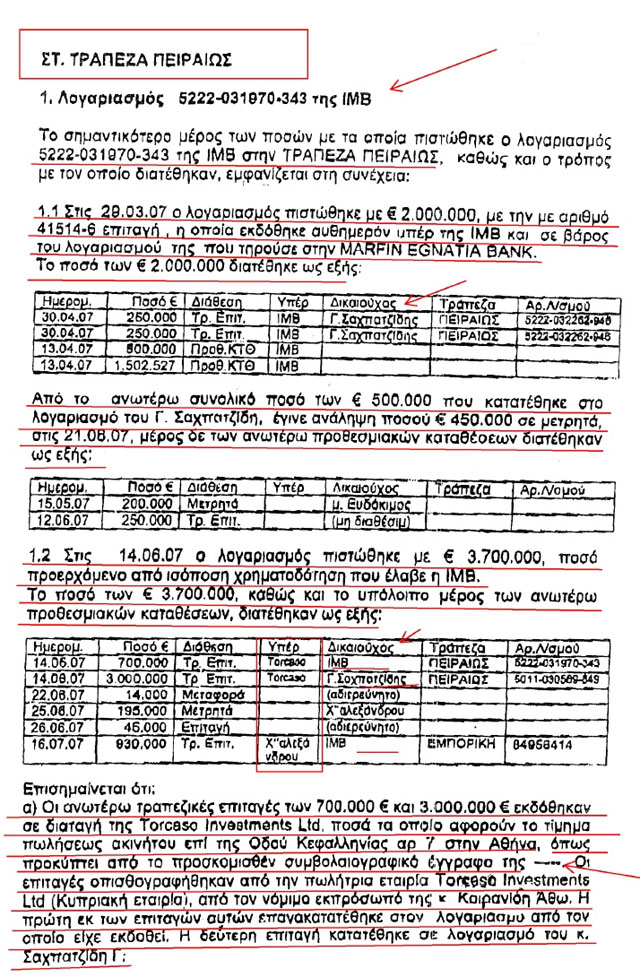 Η κίνηση των λογαριασμών Σαχπατσίδη και το ακίνητο στην Κεφαλληνίας