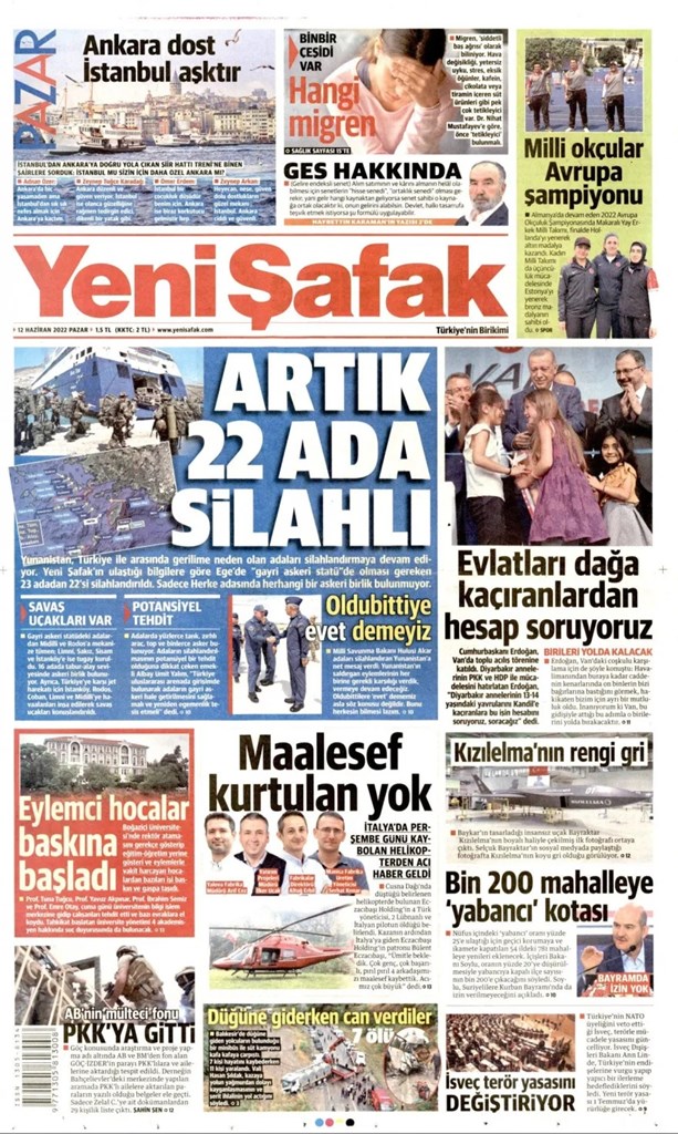 Η Yeni Safak, με τη σειρά της, αναφέρει πως η Άγκυρα μπορεί να προχωρήσει στη διεκδίκηση 22 νησιών βάσει της Συνθήκης της Λωζάνης και πως έχει την κυριαρχία σε εννιά ελληνικά νησιά.
