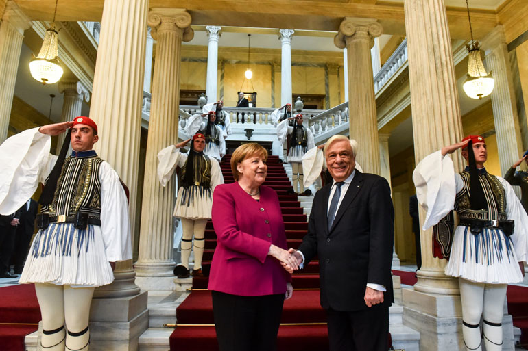 Κατά την υποδοχή, ο κ. Παυλόπουλος ανέφερε ότι «ήδη από το 2016 διαλύθηκαν κάποιες παρανοήσεις για την αμετάκλητη απόφαση της Ελλάδας να παραμείνει στην Ε.Ε. Έκτοτε ακολουθήσαμε την ευρωπαϊκή πορεία, κάνοντας πολλές θυσίες, ακόμη και για λάθη που δεν μπορούσαν να μας αποδοθούν. Η Γερμανία και εσείς στηρίξατε την Ελλάδα και την έξοδο από τα μνημόνια. Αυτό που κάνατε ήταν καλό και για τη Γερμανία, και τόνωσε το δικό σας ηγετικό ευρωπαϊκό προφίλ. Ακόμη και τώρα στηρίζοντας την Ελλάδα στηρίζετε τη συνοχή της Ε.Ε.».
