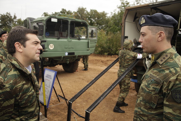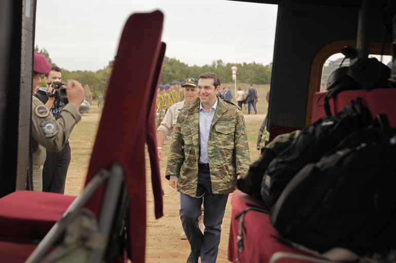 Ο πρωθυπουργός μετέβη στην Αλεξανδρούπολη και από εκεί στο Πεδίο Ασκήσεων, για να παρακολουθήσει την τελική φάση της στρατιωτικής άσκησης «Παρμενίων 2015».