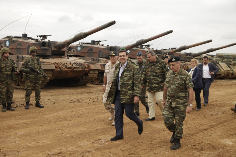 Την τελική φάση της στρατιωτικής άσκησης «Παρμενίων», στον Έβρο, παρακολούθησε ο πρωθυπουργός Αλέξης Τσίπρας, μαζί με τον υπουργό Εθνικής Άμυνας Πάνο Καμμένο.