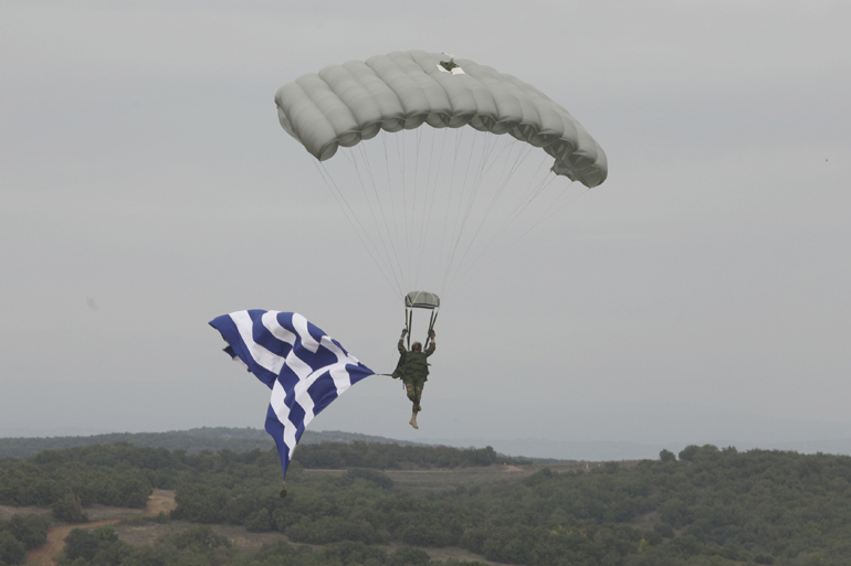 Aλεξιπτωτιστής με την ελληνική σημαία