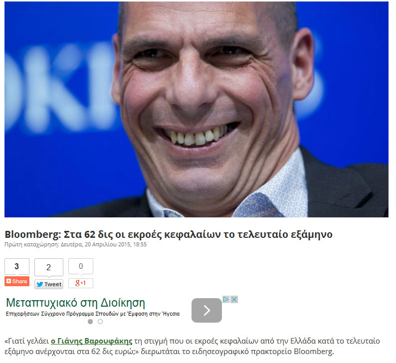 Εν τω μεταξύ, το Βloomberg φιλοξενεί νέο δημοσίευμα για ενδεχόμενο ναυάγιο στις διαπραγματεύσεις και Grexit.