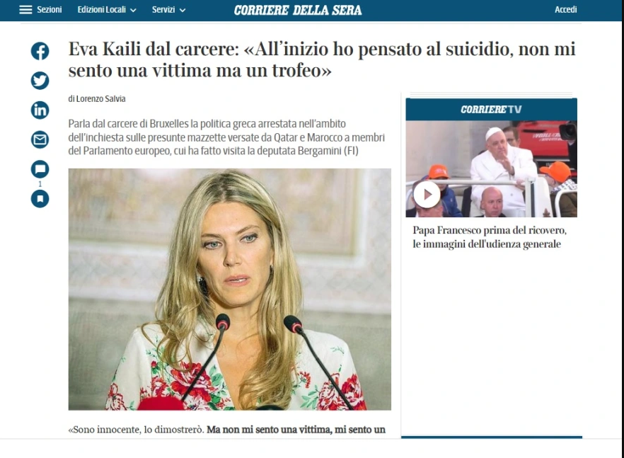 Στο δημοσίευμα της Ιταλικής εφημερίδας αναφέρεται ακόμη, ότι έχουν περάσει σχεδόν τέσσερις  μήνες από την έναρξη του Qatargate, περισσότερες από 100 ημέρες από την 9η Δεκεμβρίου, όταν η Εύα Καϊλή συνελήφθη μαζί με άλλα οκτώ άτομα, συμπεριλαμβανομένου του συντρόφου της Φραντσέσκο Τζόρτζι, ενός κοινοβουλευτικού βοηθού που εργαζόταν στις Βρυξέλλες με τον πρώην ευρωβουλευτή Αντόνιο Παντσέρι, ο οποίος κατέληξε επίσης στη φυλακή. Ο Τζόρτζι αφέθηκε τελικά ελεύθερος με βραχιολάκι.