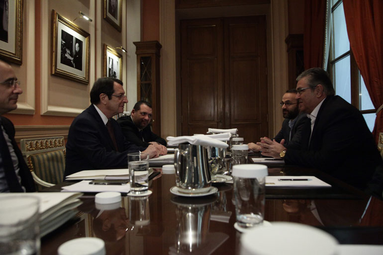 «Εκφράσαμε την μεγάλη ανησυχία μας και την αντίθεσή μας ταυτόχρονα σε μια διχοτομική συνομοσπονδιακή λύση στο Κυπριακό ζήτημα που δεν θα ενώνει, αντίθετα θα χωρίζει τον Κυπριακό λαό» δήλωσε ο ΓΓ της ΚΕ του ΚΚΕ, Δημήτρης Κουτσούμπας, μετά την συνάντησή του με τον Πρόεδρο της Κυπριακής Δημοκρατίας, Νίκο Αναστασιάδη.