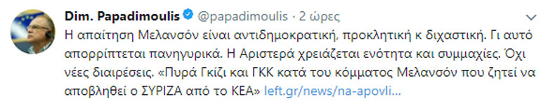 Η ανάρτηση του κ. Παπαδημούλη στο Twitter: