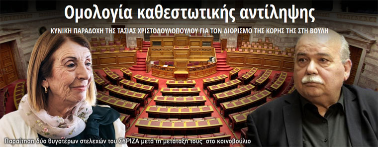 Έπειτα από τον σάλο που προκλήθηκε από την κυνική ομολογία της Τασίας Χριστοδουλοπούλου ότι η κόρη της μετατάχθηκε στη Βουλή «λόγω διασυνδέσεων και γνωριμιών» η αντιπρόεδρος της Βουλής -την ύστατη στιγμή – ζήτησε συγγνώμη από τους συντρόφους της και ανακοίνωσε ότι δεν θα συμμετάσχει στις επερχόμενες εκλογές.