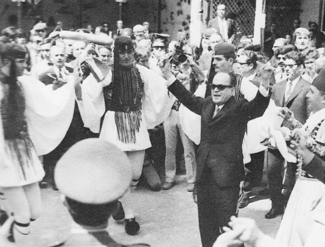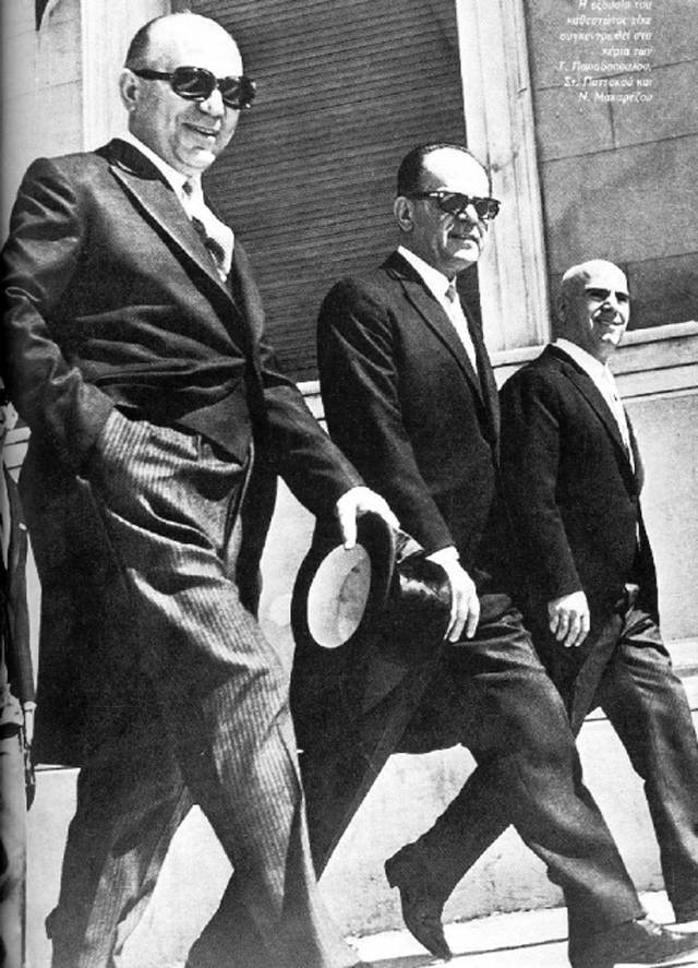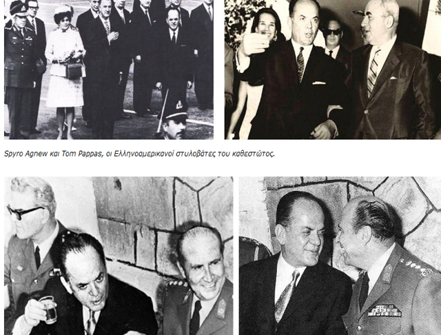 Οι φωτογραφίες καταδεικνύουν με αμείλικτη συνέπεια την πραγματική εικόνα. Ο αντιπρόεδρος των ΗΠΑ Σπύρος Άγκνιου με τον επίσης ελληνικής καταγωγής Τομ Πάππας και σε ρόλο μείζονα τον Αμερικανό πρέσβη Χένρυ Τάσκα, που στα ιταλικά σημαίνει «τσέπη» με ότι αυτό συνεπάγεται, ποζάρουν φιλάρεσκα στον φωτογραφικό φακό παρέα με τους ντόπιους αρλεκίνους – δυνάστες.