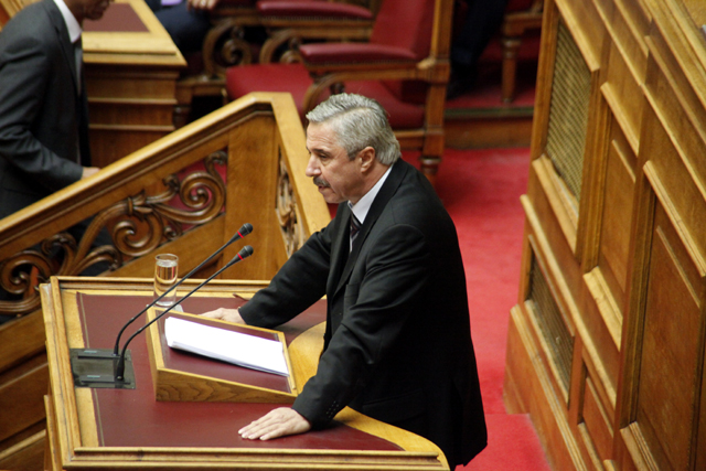 Ο βουλευτής μόλις είχε πει ότι «τα τάγματα εφόδου δεν θα περάσουν». Έξαλλοι οι βουλευτές της Χρυσής Αυγής κουνώντας τα χέρια και φωνάζοντας «είστε κλέφτες και απατεώνες, είστε αλήτες και λαμόγια, θα λογοδοτήσετε γιατί 20 χρόνια κλέβατε τη χώρα».