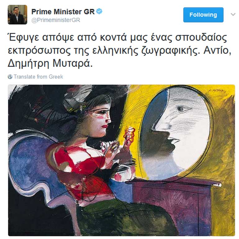 «Αντίο, Δημήτρη Μυταρά», πρόσθεσε ο κ. Τσίπρας.