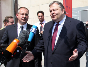 Εισερχόμενος ο πρόεδρος του ΠΑΣΟΚ δήλωσε προς τους εκπροσώπους του Τύπου, ότι η κατάσταση στην Ελλάδα είναι μεν κρίσιμη, πλην όμως μπορεί να ξεπεραστεί με τη βοήθεια και την αρωγή της Ευρώπης. Κάτι που, όπως τόνισε, θα έχει ως αποτέλεσμα τη γενικότερη σταθεροποίηση της ευρωπαϊκής οικονομίας προς όφελος των λαών της Ευρώπης.