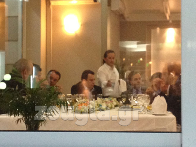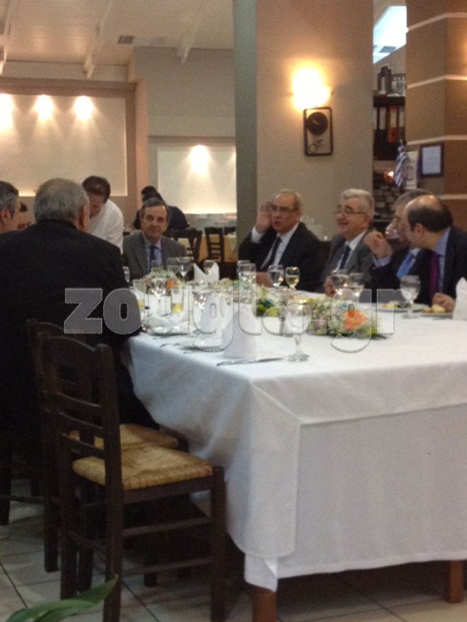 Μετά από πρόσκληση του δημάρχου Πειραιά Βασίλη Μιχαλολιάκου, ο πρωθυπουργός Αντώνης Σαμαράς έφτασε σε γνωστή ταβέρνα στο Πασαλιμάνι περίπου στις 21.00 το βράδυ της Δευτέρας.