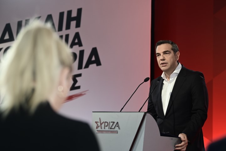 Υπογράμμισε ότι στις 25 Ιουνίου «δύο είναι τα εναλλακτικά προγράμματα και τα εναλλακτικά σχέδια διακυβέρνησης που τίθενται στην κρίση των πολιτών. Αυτό τη ΝΔ με τις φανερές, αλλά κυρίως τις κρυφές πλευρές του, που αναφέρονται στο μεσοπρόθεσμο που πριν από δύο μήνες κατέθεσε ως κυβέρνηση στην Ευρωπαϊκή Επιτροπή. Και αυτό του ΣΥΡΙΖΑ ΠΣ». Ανέφερε ότι τα διλήμματα που προκύπτουν για κάθε πολίτη είναι: «Ισχυρή κοινωνία, με ισχυρό κοινωνικό κράτος, ή όποιος δεν προσαρμόζεται πεθαίνει; Ισχυρή δημοκρατία, ή απαξίωση του Κράτους δικαίου; Ισχυρή οικονομία, που στηρίζεται στη γνώση, την καινοτομία, την έρευνα, τη συνεργασία, ή η ασυδοσία των αγορών που ζήσαμε τα τελευταία χρόνια; Οι πελατειακές σχέσεις, τα δίκτυα των προνομιούχων, η παντοδυναμία των funds, η τεράστια ανακατανομή πλούτου και περιουσιών; Δημόσια υγεία υψηλού επιπέδου προσβάσιμη σε όλους, ή κλείσιμο δημόσιων δομών, νοσοκομεία ΝΠΙΔ, ακόμη και διαλογή ασθενών; Αξιοπρέπεια και ασφάλεια στην εργασία, με καλύτερους μισθούς, καλύτερες συνθήκες, ή επισφαλής, ανασφάλιστη και υποαμειβόμενη εργασία που τροφοδοτεί μια στρεβλή ανάπτυξη που ευνοεί ελάχιστους;».
