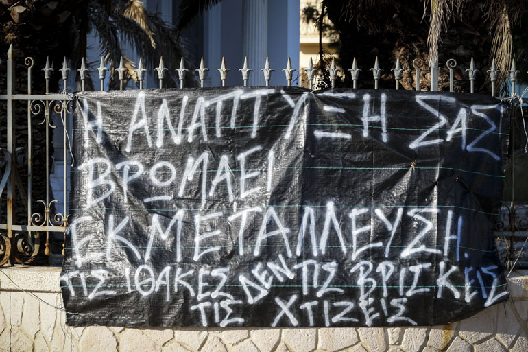Κάτοικοι του νησιού έχουν κρεμάσει πανό κατά του διαγγέλματος του Αλέξη Τσίπρα.